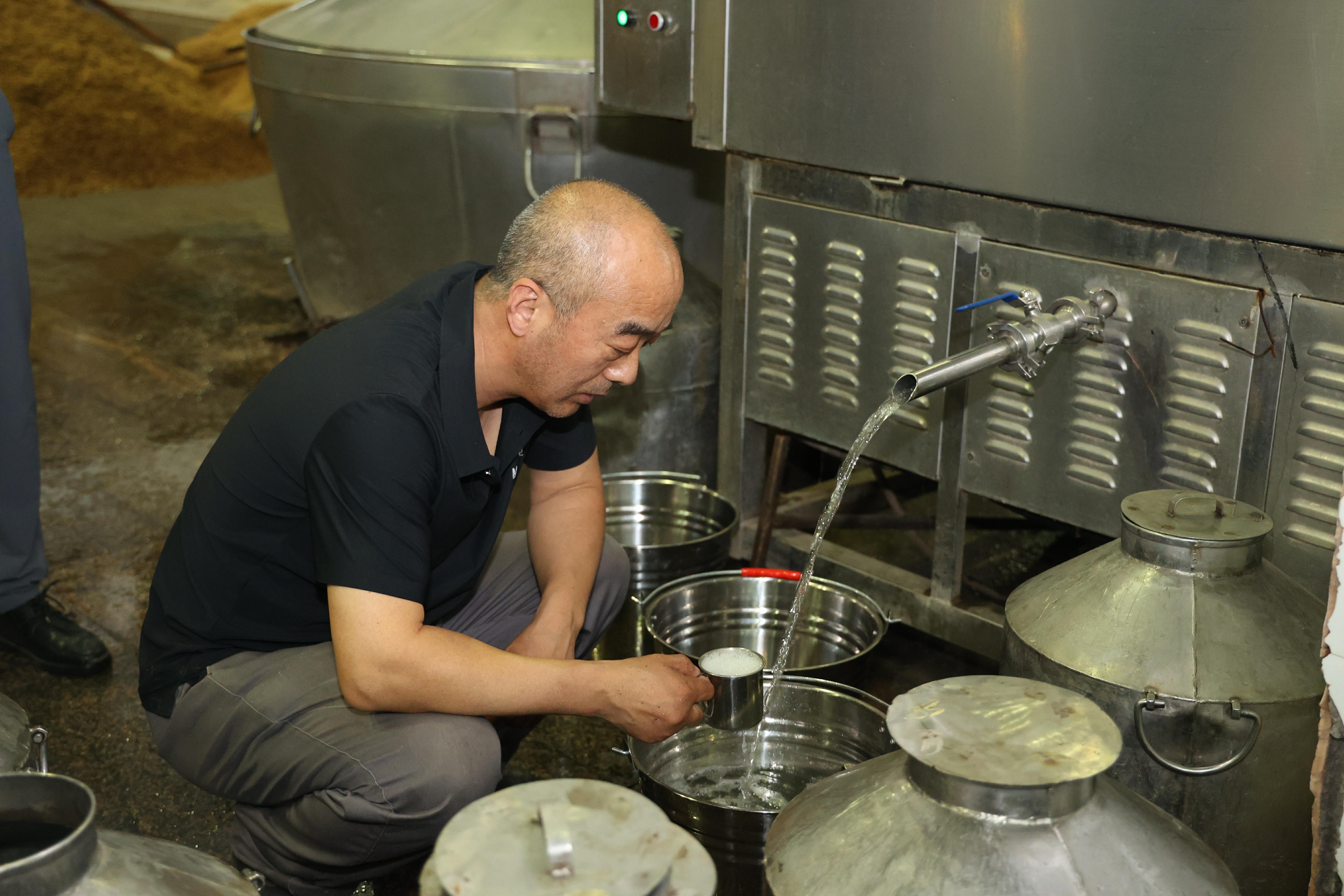 裝甑比賽現(xiàn)場,參賽選手凝神聚力,手上動(dòng)作嫻熟,裝甑工具上下翻飛,嚴(yán)謹(jǐn)、規(guī)范的高超技能展現(xiàn)的淋漓盡致,裝甑扣盤、調(diào)整氣壓,晶瑩剔透的酒漿緩緩流出,接上一杯還冒著熱氣的新酒,細(xì)品一口頓感滿口濃烈酒香。選手們不疾不徐的節(jié)奏,游刃有余的技藝,心無旁騖的專注,讓比賽變成了賞心悅目而又韻味悠長的寫生畫卷。