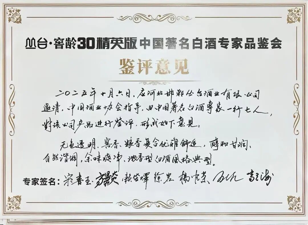 “叢臺?窖齡30新品發(fā)布”環(huán)節(jié)備受關(guān)注。該新品此前于專家品鑒會獲一致好評,中國酒業(yè)泰斗高景炎現(xiàn)場宣讀品鑒報(bào)告: